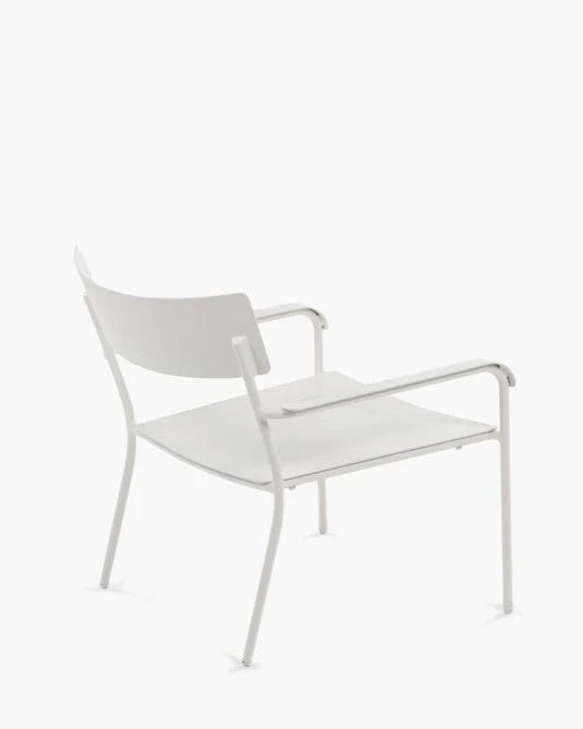 These weather-resistant lounge chairs are made entirely of black or grey-green powder-coated aluminium and can be used indoors or outdoors for a pleasant moment of relaxation.