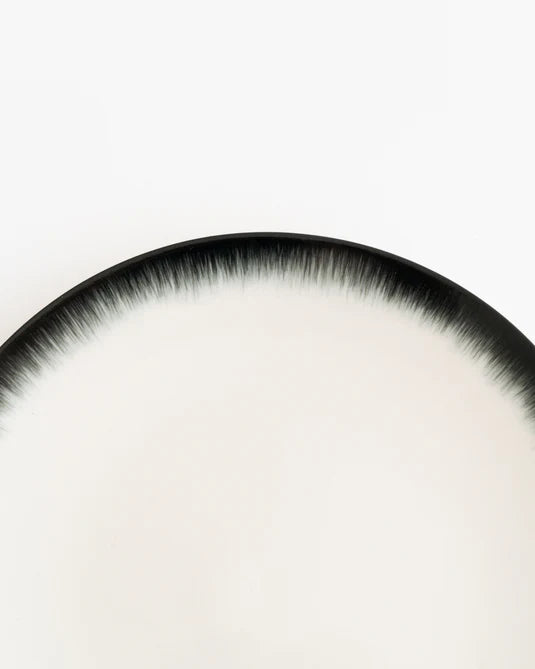 A 12-piece breakfast set from the Dé collection designed by Ann Demeulemeester for 4 people. Dé translates the play of chiaroscuro, light, and shadow characteristic of Ann Demeulemeester's style into a service. The result is a collection of shaded patterns painted on porcelain.
