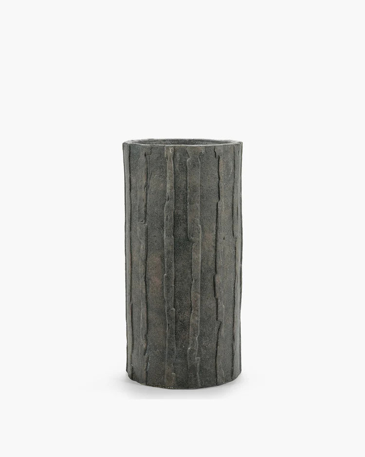Kelly Wearstler's Rift planters highlight texture with vertical lines that elegantly encircle each piece. Simple off-white and green-black glazes enhance their calm, natural look. Note: Do not plant directly in the pot; always use a separate inner pot.