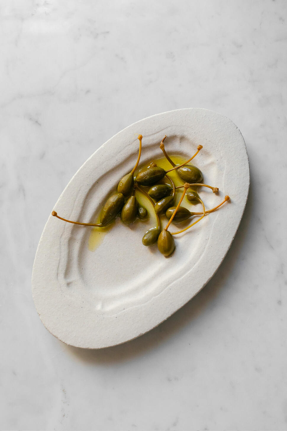 Play with associations with the Cantine plates by daring to mismatch shapes, material effects and colors. Oval ceramic dish M.