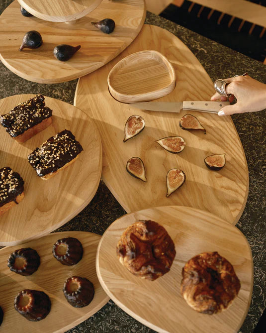 Ervaar de schoonheid van vakmanschap met deze serveerschaal en kom van essenhout. Elk detail van deze schaal is zorgvuldig vervaardigd, waardoor de natuurlijke nerf en afwerking de authentieke schoonheid van het lichtbruine hout accentueren. Verkrijgbaar in twee maten.