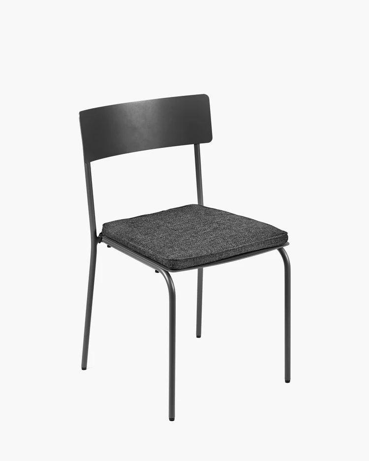 Les coussins d'extérieur pour les chaises compactes August font partie de la collection de mobilier de jardin minimaliste conçue par Vincent Van Duysen pour son projet de conversion du monastère de l'ancien hôpital militaire à Anvers en hôtel, nommé August.
