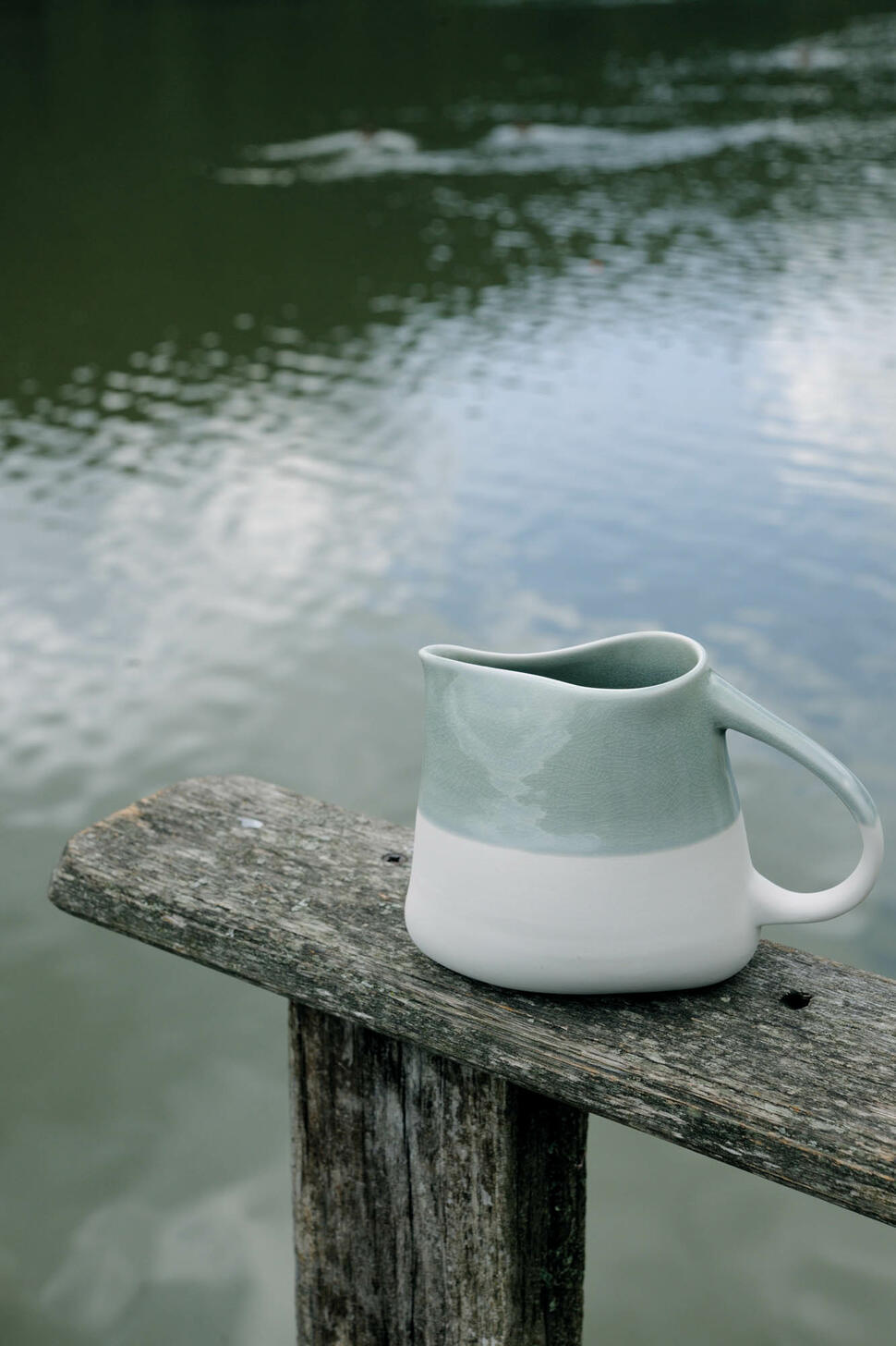 Pichet en céramique parfait-imparfait, aux lignes irrégulières. Forme organique et délicate, trace de la main du céramiste.